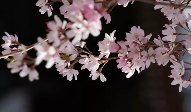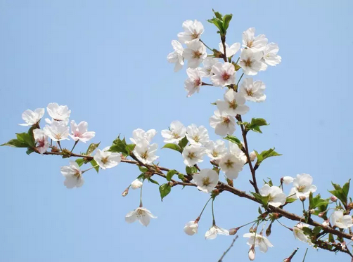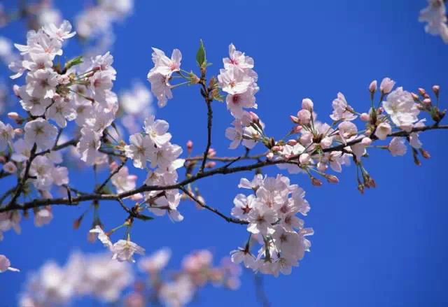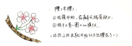 如果树枝有横纹,花瓣顶端有个豁口,花一簇一簇的,那一定是樱花。
