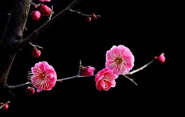 从花型上来看,桃花和梅花都没有长长的花柄,就像直接贴在花枝上开一样。桃花个头比梅花要大,花瓣软软的,摸起来的质感像纸,梅花摸着则更像蜡。